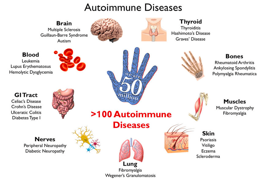 About ten years ago, I was diagnosed with the beginning of lupus and my doctor advised me that I have nothing to worry about. I thank God that with all the symptoms that occur with autoimmune disease, I exhibit about three and they’re not severe. I attribute that by building up my immune system due to healthy eating habits and taking vitamins. Below is a brief list of the autoimmune diseases.