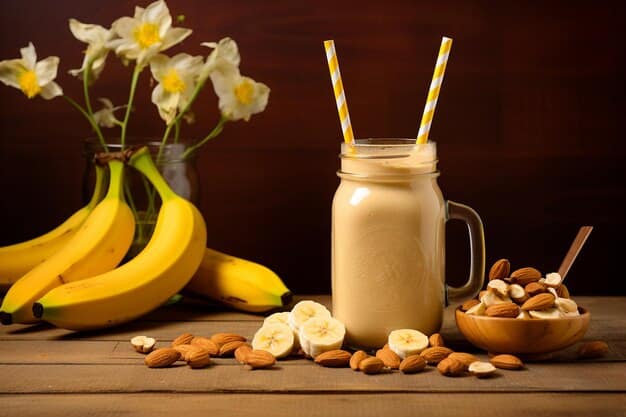 3. In a blender, combine almond milk ice cubes, frozen bananas, 2 cups almond milk, almond butter, maple syrup, vanilla extract and ground cinnamon. Blend until ice is crushed and mixture is smooth.